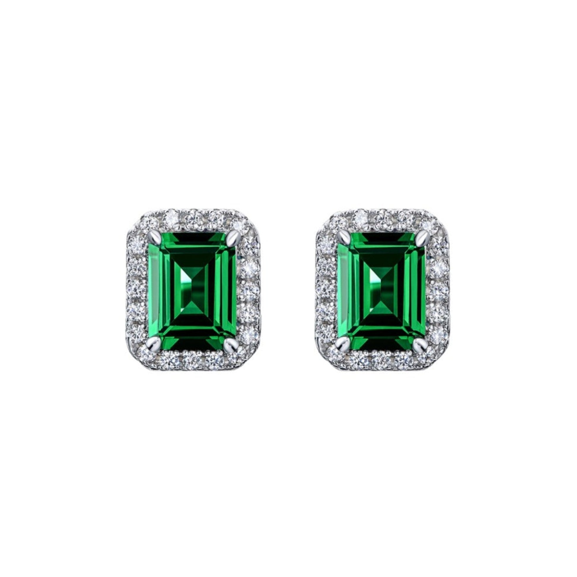 These stunning earrings feature 3-carat gemstones encrusted with sparkling diamond simulants. The emeralds are crafted using cutting-edge technology to mimic the beauty and brilliance of natural emeralds, while the diamond simulants add an extra touch of elegance and sparkle. The earrings are made with high-quality materials and feature a secure post and friction back closure. The rich green color of the emeralds adds a pop of color to any outfit, making these earrings the perfect statement piece for any occasion.