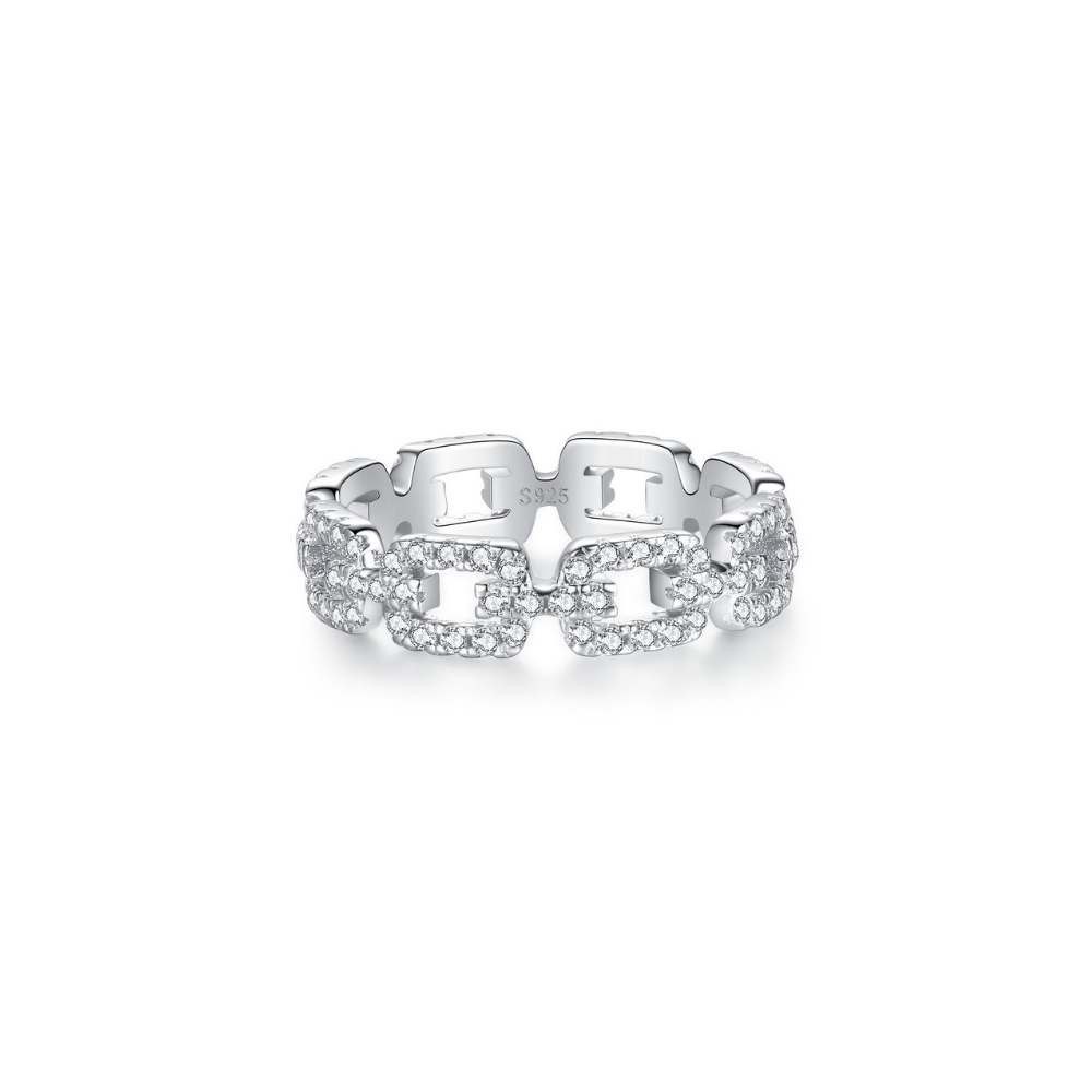 Introducing the "Effortlessly Glam" Ring – a stunning fusion of style and simplicity, meticulously designed to elevate your everyday look. This exquisite ring boasts a chain-shaped design adorned with sparkling simulants, creating a captivating accessory that seamlessly transitions from day to night.